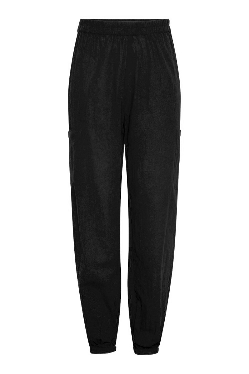 Et par MUSTHAVE bukser efter vores mening, er disse bukser fra Pieces. De har et løst snit der går ind i bunden med elastik ved anklen. Bukserne har en bred elastikkant i livet der gør dem super behagelige at have på. Style dem helt afslappet med en t-shirt eller gør dem super feminine med en fin skjorte og et par stiletter.