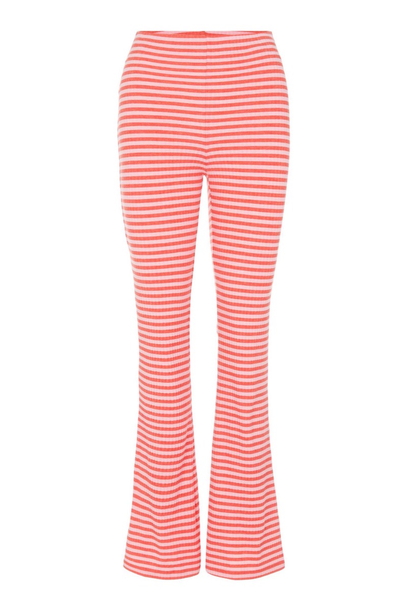 Stribet bukser i lyserød og røde farver. De er lavet i den blødeste kvalitet med elastik i taljen og vidde i benene der giver et cool udtryk. De er med masser af stræk hvilket gør den helt fantastiske at have på med den matchende bluse.