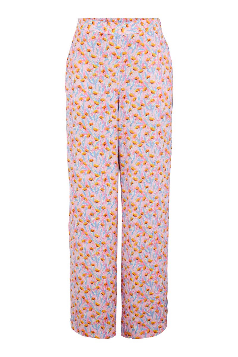 Kan man ønske sig mere end et par løse lette bukser i det skønneste print fra Pieces? Nej vel! Disse bukser er lige i benene, med fast linning foran og elastikkant bagtil. Bundfarven er pastel blå med et grafisk blomsterprint i pink og orange nuancer. Style dem med matchende kjole eller en skjorte.