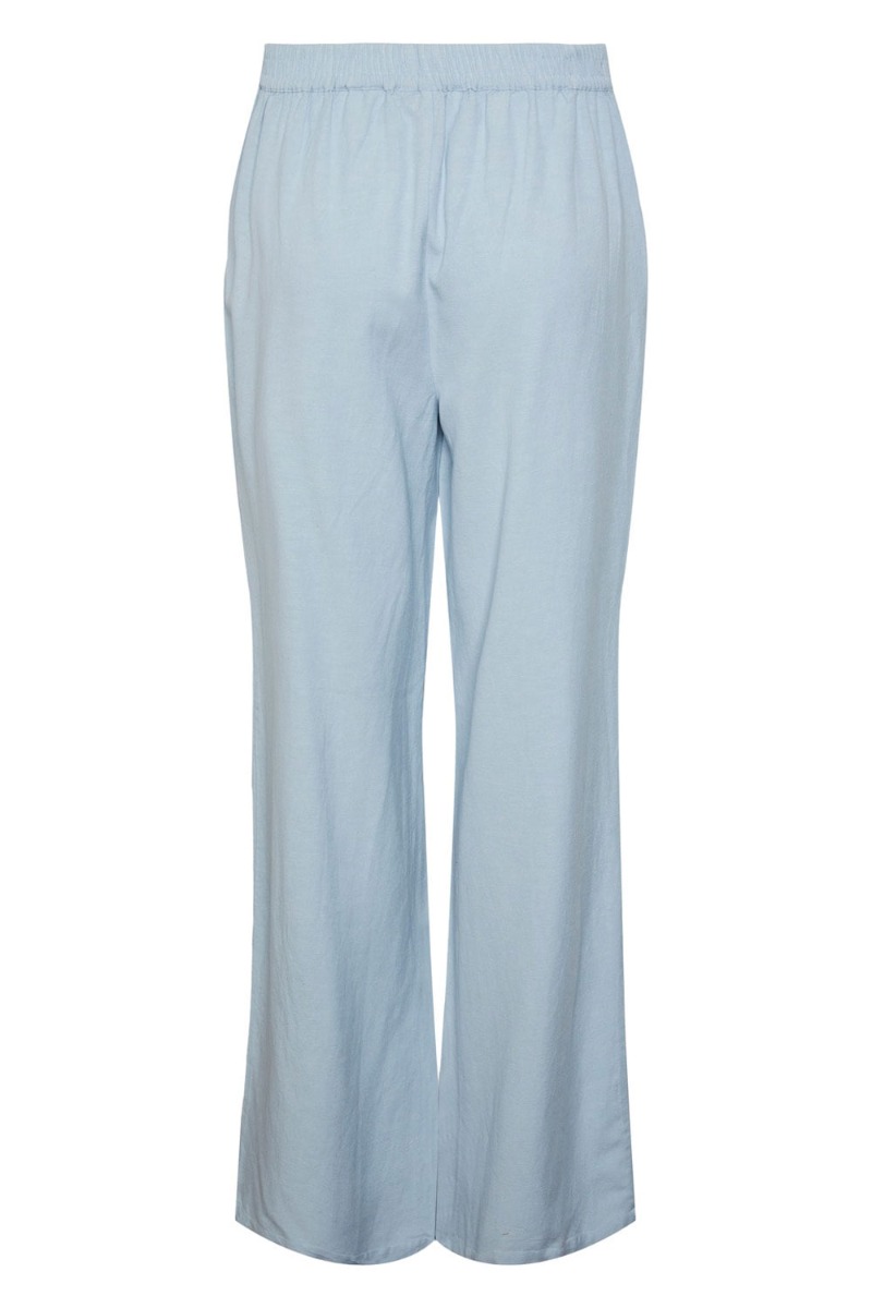 Klassiske bukser fra Pieces i lyseblå med elastikkant i livet og sidelommer. Bukserne er designet i et dejligt løst snit med en smule hørkvalitet i der gør dem luftige til de varme dage. Et musthave at have i garderoben til sommer.