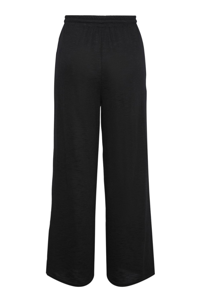 Et par skønne bukser fra Pieces i en neutral sort farve er kommet som en del af et sæt. Der findes nemlig en matchende bluse til. De er med vide i benene samt med elastik i taljen. I taljen sidder også et smalt bindebånd som kan lave en lille sløjfe detalje. Det er et rigtig søndagssæt som også findes i grøn.