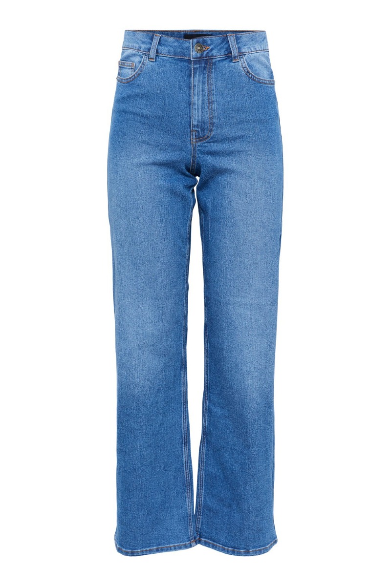 Denim jeans fra Pieces i en sej blå denim farve. Disse jeans er super behagelig at have på med stretch. Bukserne er med vidde og er lige i benene der giver et afslappet casuel look. De er højtaljet og lukkes med knaplukning og lynlås. Et par jeans der bare er uundværlige til efterårsgarderoben.
