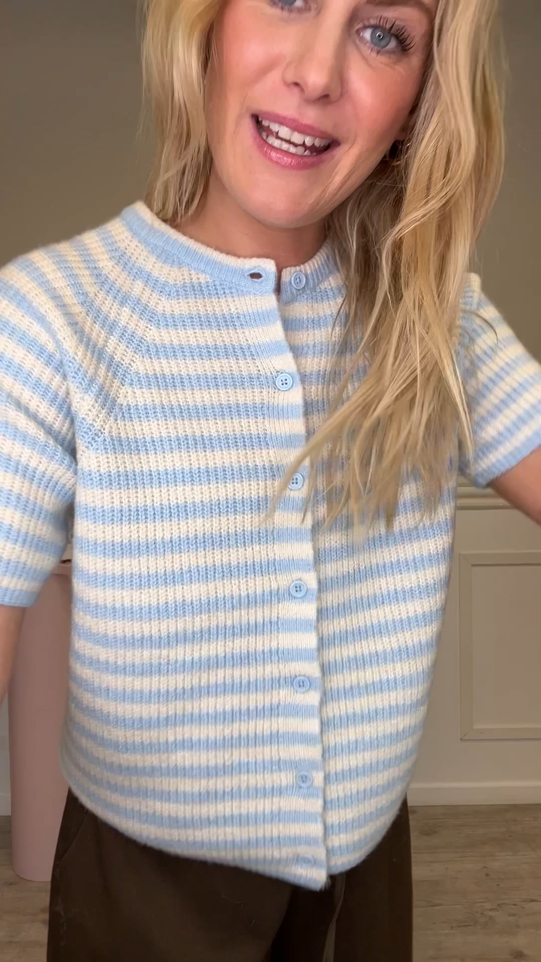 Pieces - Cardigan - Malou SS O-Neck stripe Cardigan - Cashmere Blue Birch