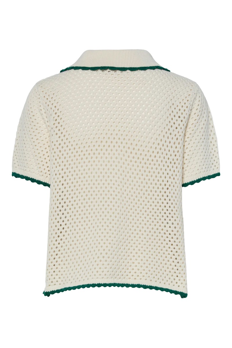 Pieces - Cardigan - Molly SS Collar Knit Cardigan - Cloud Dancer/Medium Green