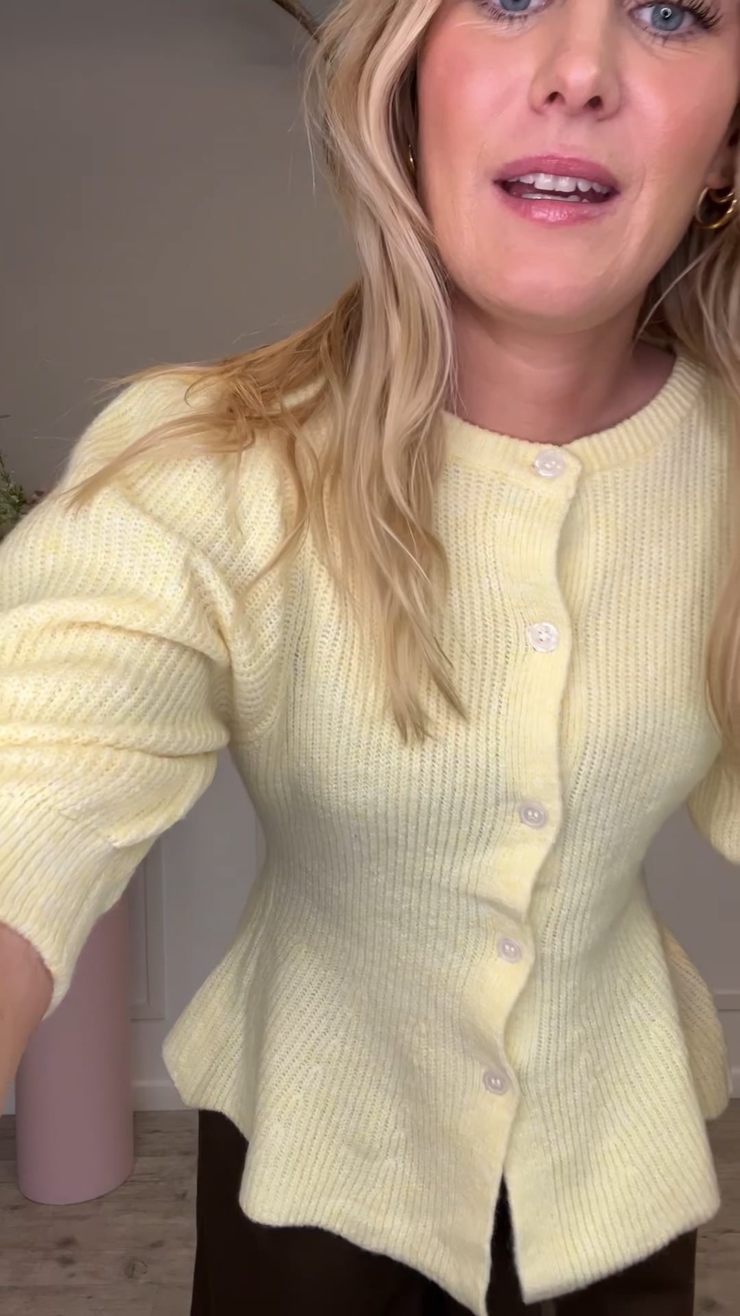 Denne lysegule cardigan fra Pieces er strikket i et blødt, ribbet materiale, som giver et behageligt og let elastisk fit. Den har korte, puffede ærmer, der tilfører et feminint og romantisk udtryk, samt en rund halsudskæring. Cardiganen lukkes foran med små knapper i samme farve som stoffet, hvilket skaber et harmonisk og elegant look. Den let figursyede pasform og det bløde fald giver en flatterende silhuet, mens den lysegule farve tilfører varme og friskhed – perfekt til forår og sommer, både til hverdag og pænt brug.