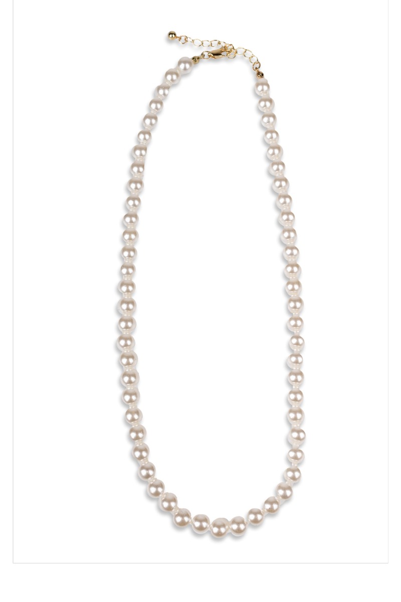 Sød perlekæde fra Pieces med hvide perlemorsperler. Den kan justeres i nakken ved lukningen og findes med flere farver. Den er super fin både til dit hverdagslook og festlook.