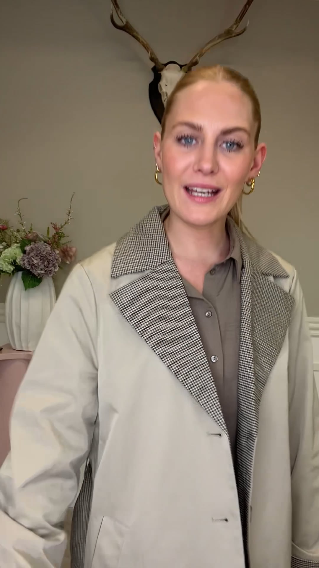 En smuk jakke fra Pieces er kommet i denne klassiske beige farve. Den er med brede ærmer og lukkes foran med både knapper og bindebånd - helt som en trenchcoat skal. Derfor er den også rummelig til at man kan bruge en strik over eller sammen med en fyldigt halstørklæde.