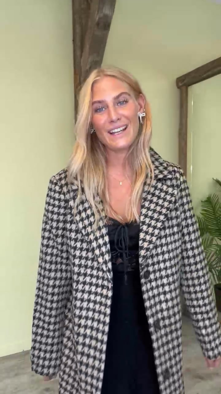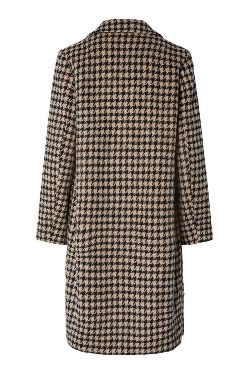 En super fin jakke fra Pieces er landet på shoppen! Denne jakke er dejlig lang og i et habitsnit, som altså bare gør den super smart sammen med det unikke mønster. Jakken lukkes med knapper foran og har skjulte lommer i siden.