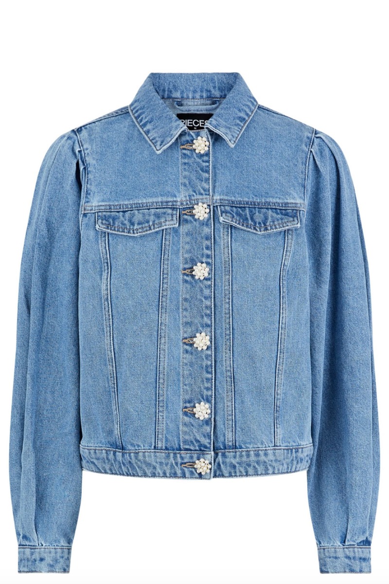 Sejeste denim jakke med små similisten knapper fra Pieces. Jakken er i et kort udtryk med lange løse ærmer som har en lille balloneffekt i sig. De smukke similistensknapper giver det fineste feminime udtryk som spiller perfekt sammen med det cool denim udtryk. Styl den over sommerens kjole eller til et par farvede shorts.