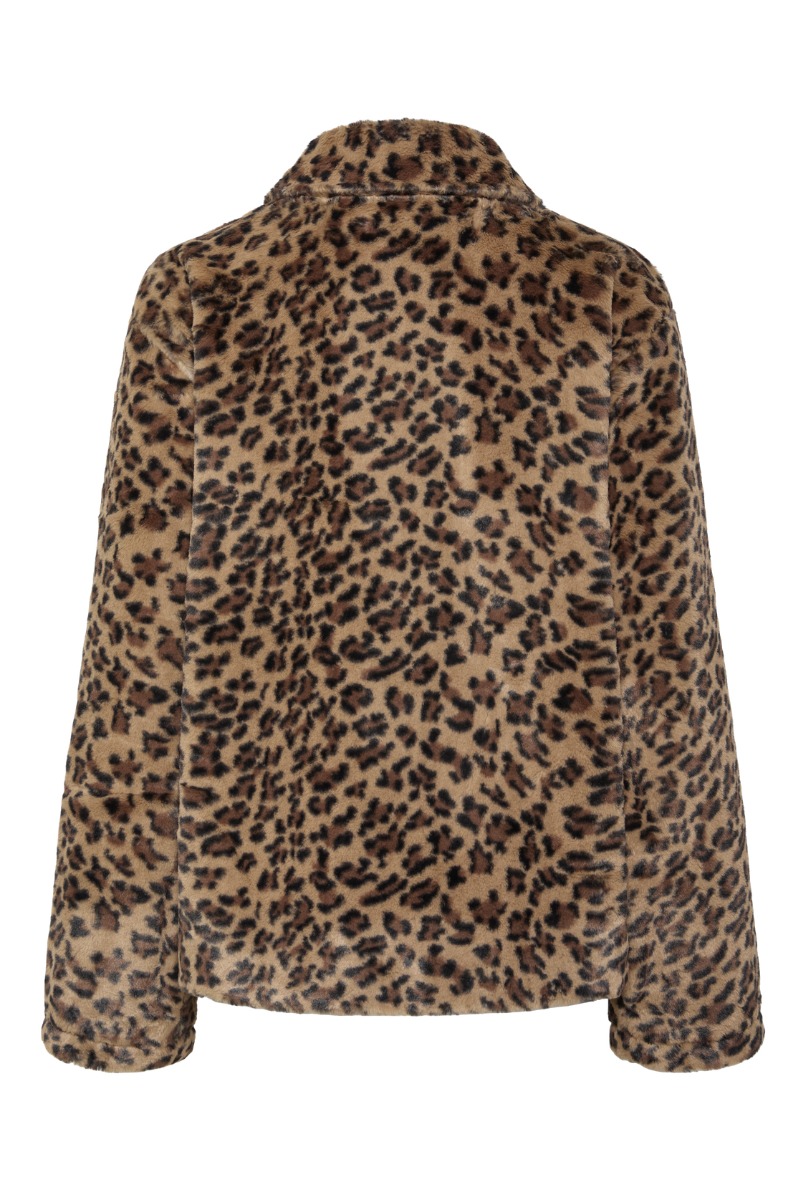 Endnu mere leopard fra Pieces - det kan vi altså ikke få nok af her hos Lykke By Lykke. Detter en overgangsjakke i et pelset look med knaplukning foran og lommer i siden som er riet forsigtig sammen og skal klippes forsigtigt op. Den er løs i pasformen og har en brede krave som ligger sig fint foran ved skulderne. Brug den gerne til hvilket som helst outfit.
