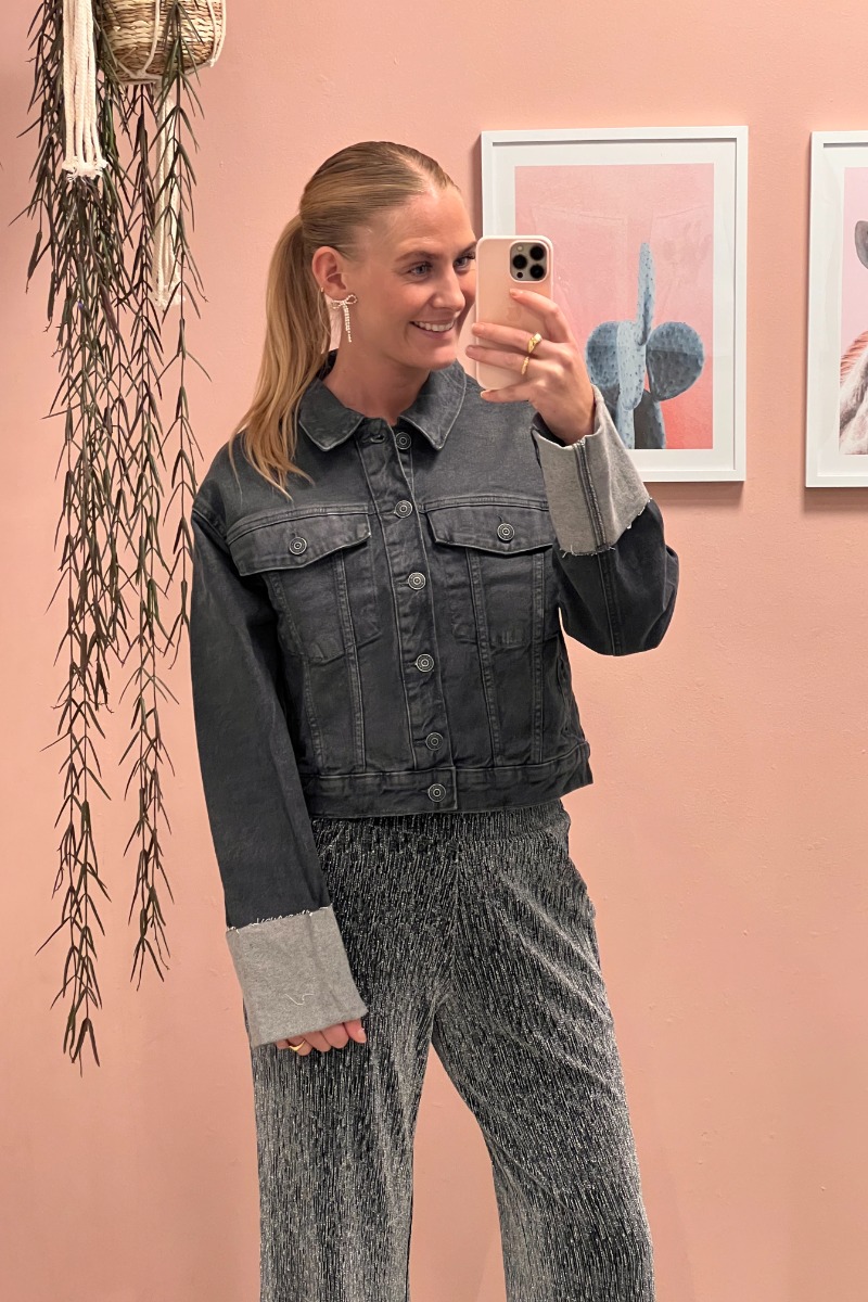 En cool jakke fra Pieces er kommet i en smuk grå farve. Den har et sejt udtryk med denne fold-op detalje ved ærmerne. Den er perfekt til hverdag med de matchende jeans til.