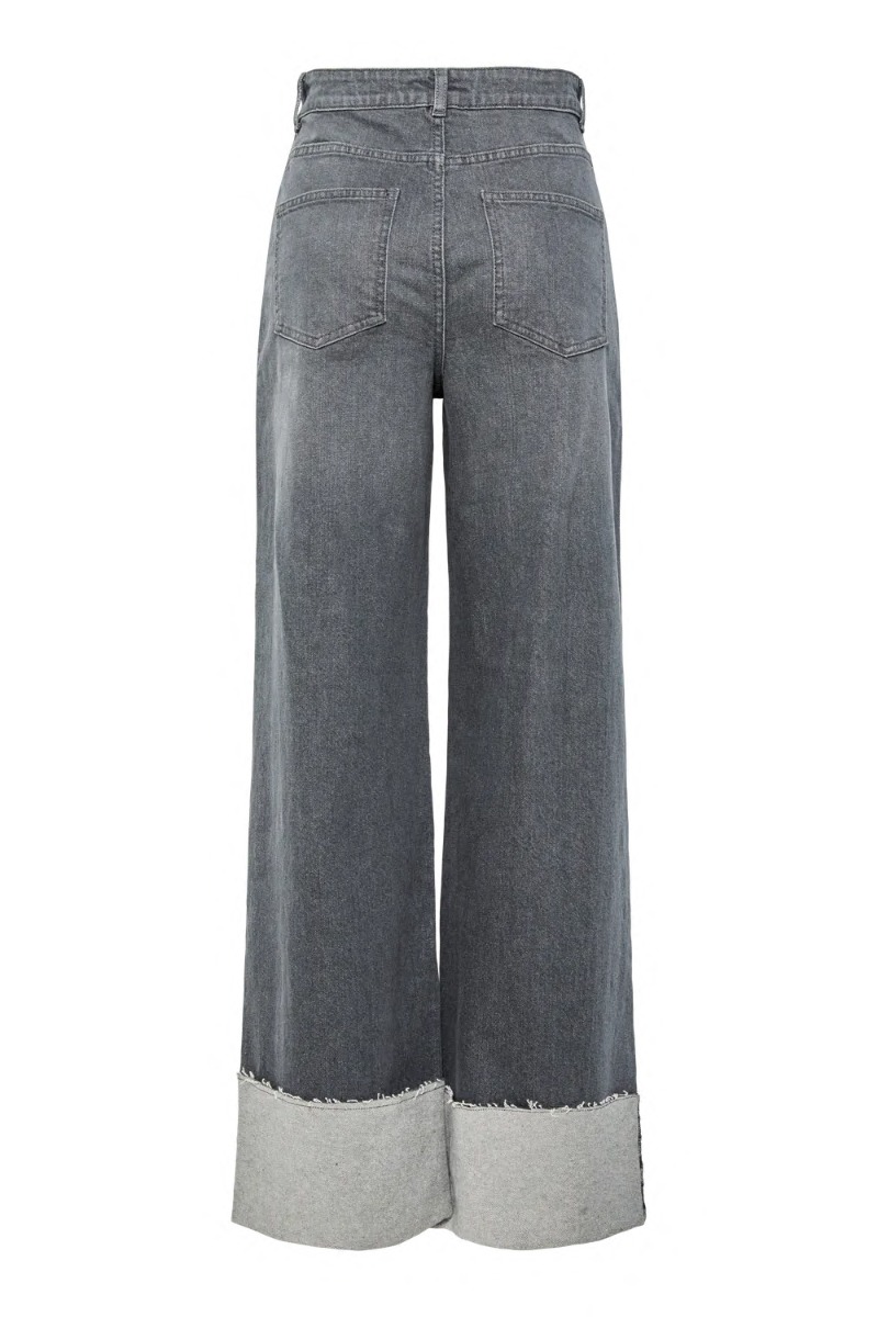 Et par cool jeans fra Pieces er kommet i en smuk grå farve. De er med vide i benene og har denne seje fold-op detalje i bunden. De er højtaljet og perfekt til hverdag med en simpel t-shirt eller til en skjorte. Der er en smule stræk i kvaliteten.