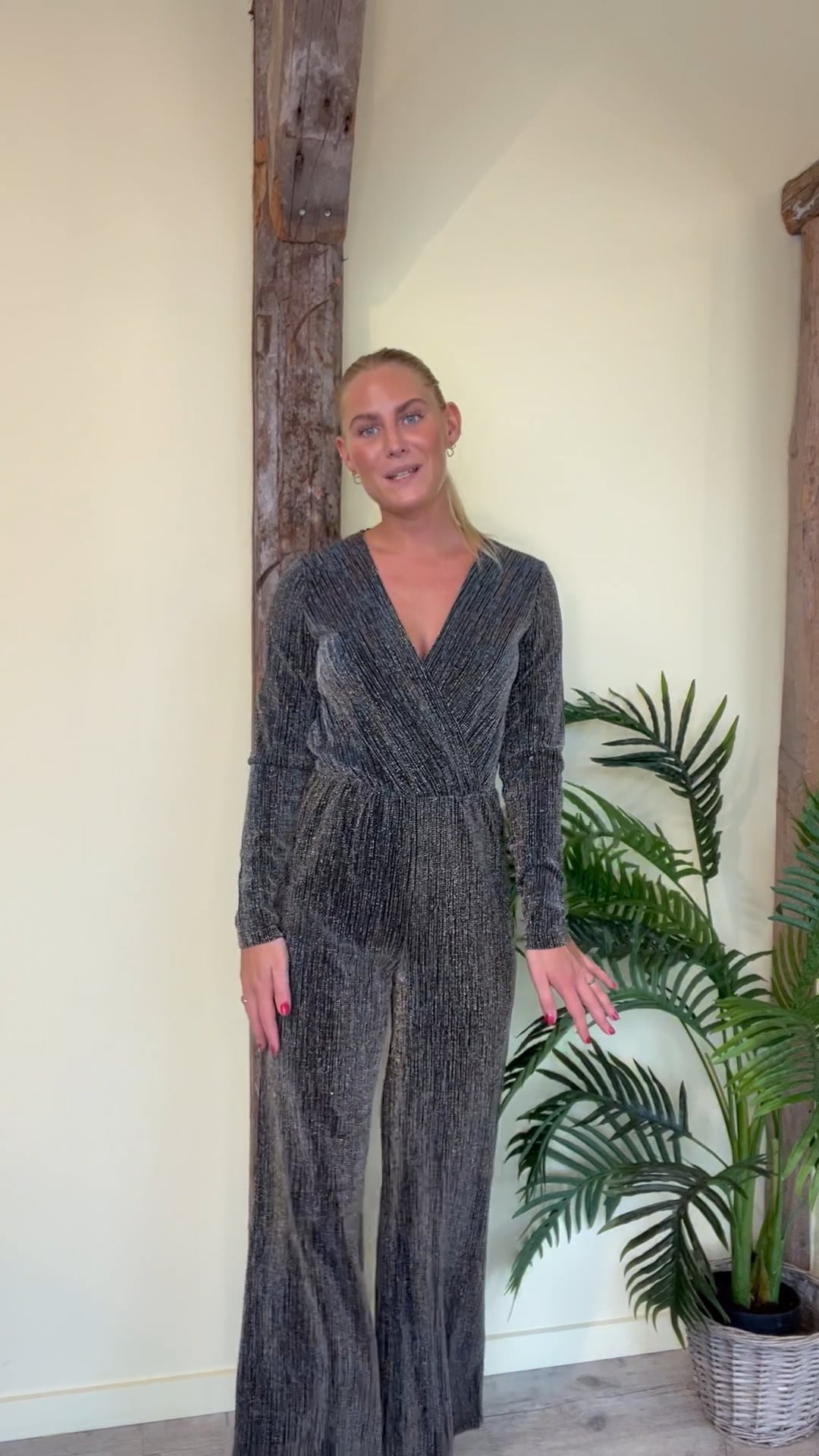 Den FLOTTESTE jumpsuit fra Pieces med glimmereffekt i multifarvet. Jumpsuit er i en virkelig smuk og feminin pasform med løse ben og v-udskæring med slå-om effekt. Den har lange tætsiddende ærmer og elastik i livet der giver en flot talje. Jumpsuiten er stretchy og perfekt til de kommende julefrokoster og fester, waaaauu..