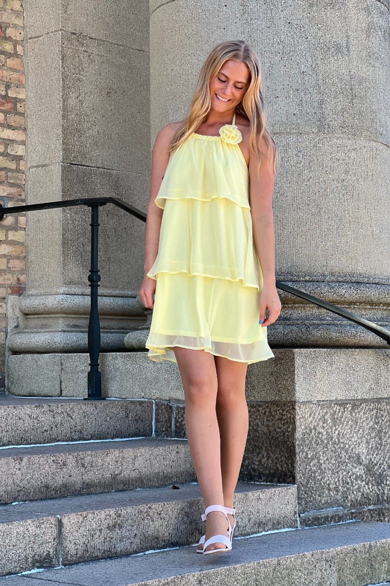 Pieces - Kjole - Clara Sl Short Layred Dress - Pale Banana