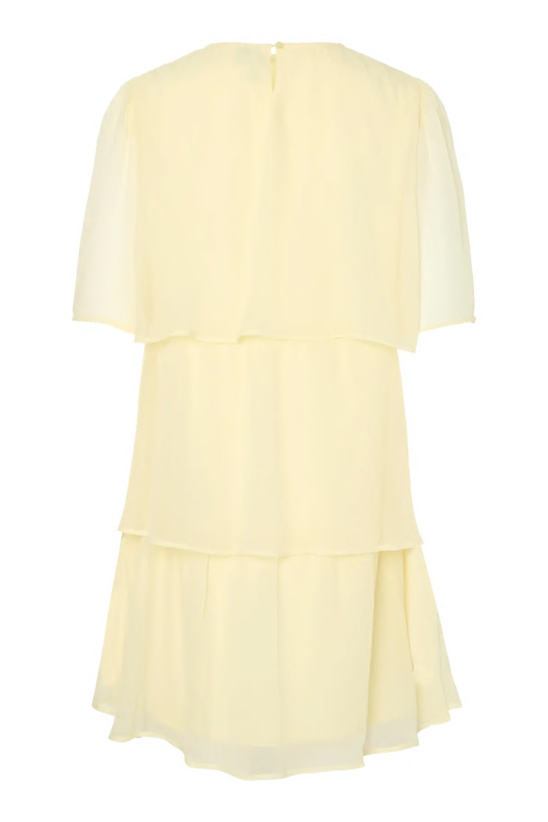 En supersød og virkelig sommerlig kjole fra Pieces i den fineste gule farve. Denne kjole er let og luftig, og syner af flere lag, som falder flot langs kroppen. Den har desuden en underkjole, så den er ikke gennemsigtig. Brug den både til hverdag her til sommer eller til fest!