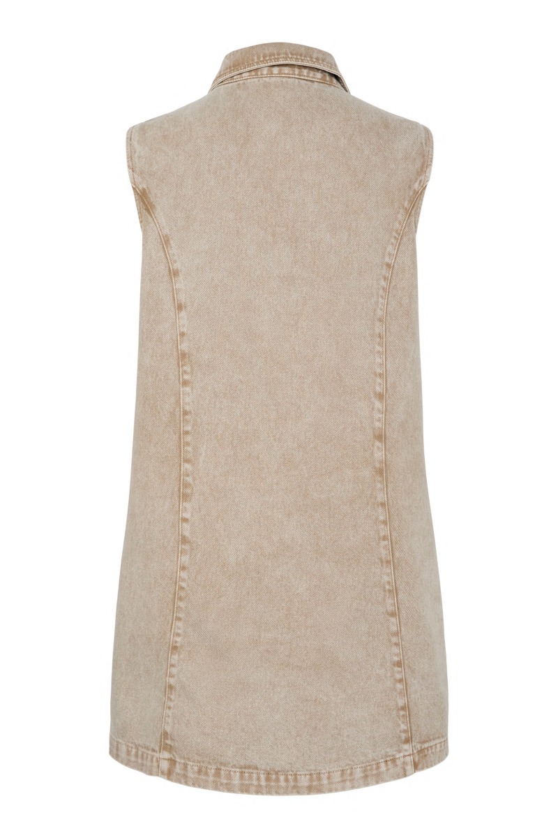 Cool kjole fra Pieces. Denne kjole har en sej beige/brunlig farve nuance i denim. Kjolen har skjult knaplukning foran, krav og lommer. Den har et taknemmeligt snit og behagelig, luftig pasform. Brug den evt. med et par fede støvler til festivaller/koncerter, eller med en sandal til ferien.