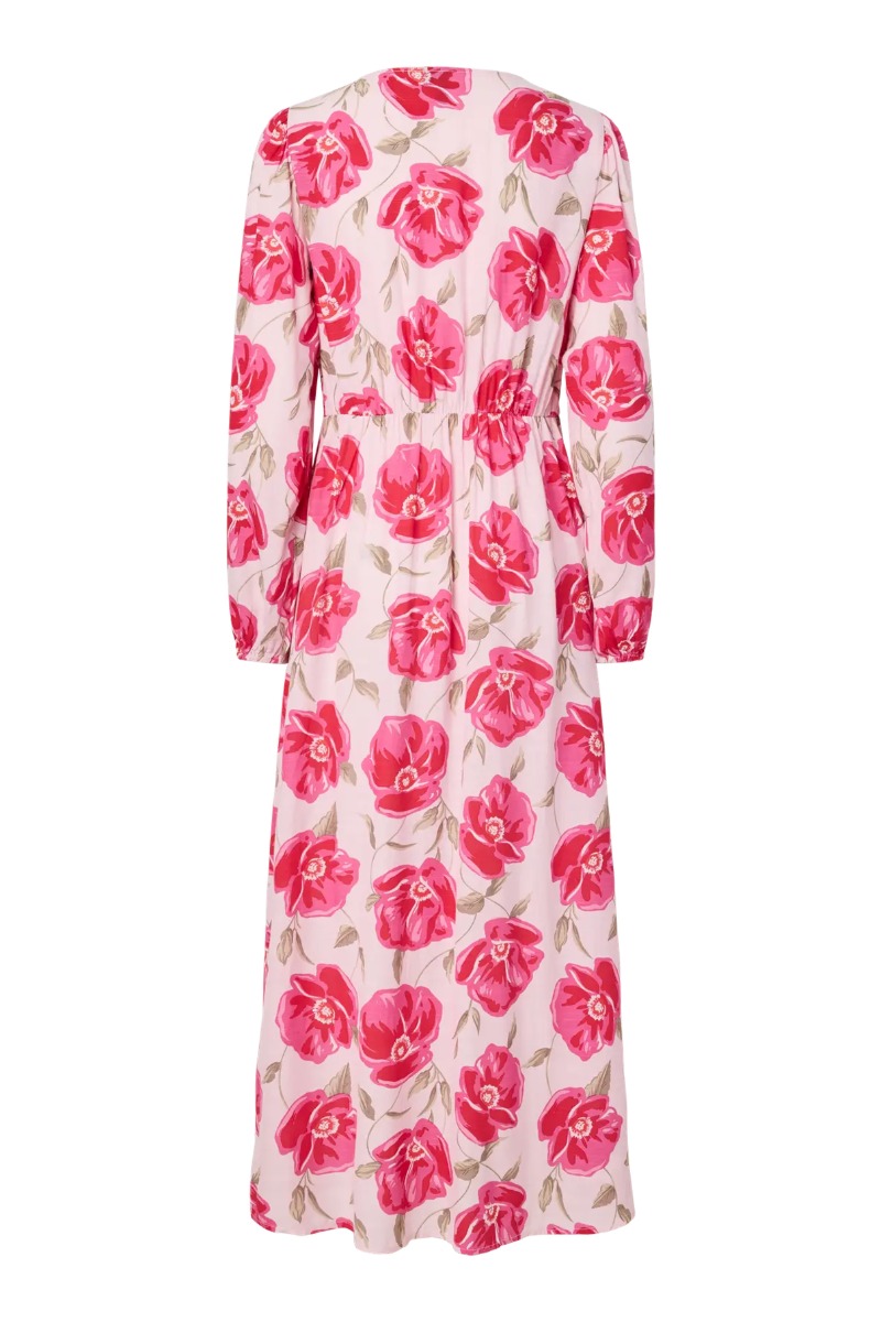 Pieces - Kjole - Gaitlyn LS Ankle Dress - Pink-A-Boo AOP flower + DTM button (Levering midt maj)