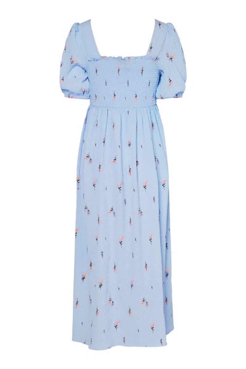 Pieces - Kjole - Jeo SS Square Neck Midi Dress - Cashmere Blue Flowers