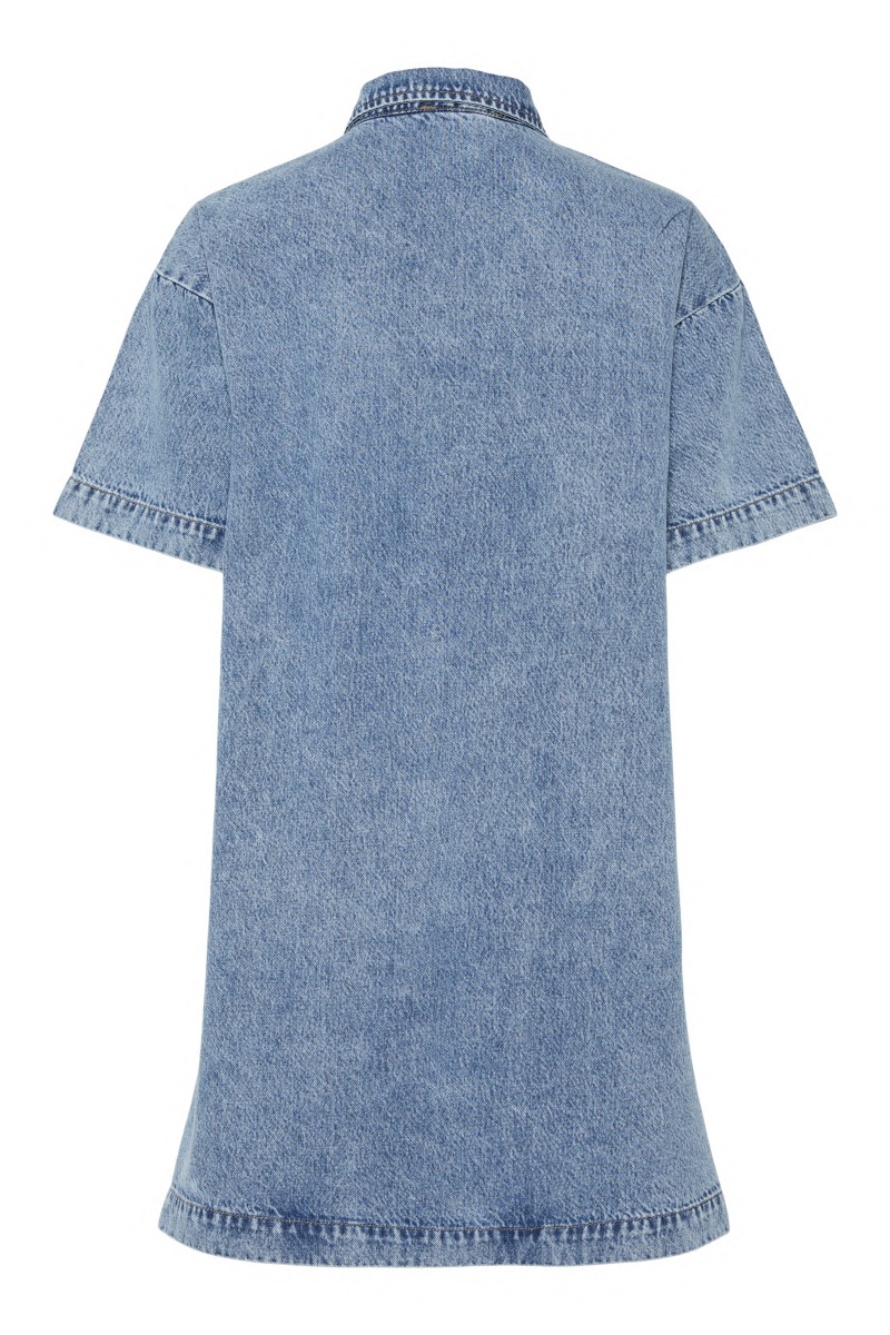 Pieces - Kjole - Kenya SS A-Shape Denim Dress - Medium Blue Denim