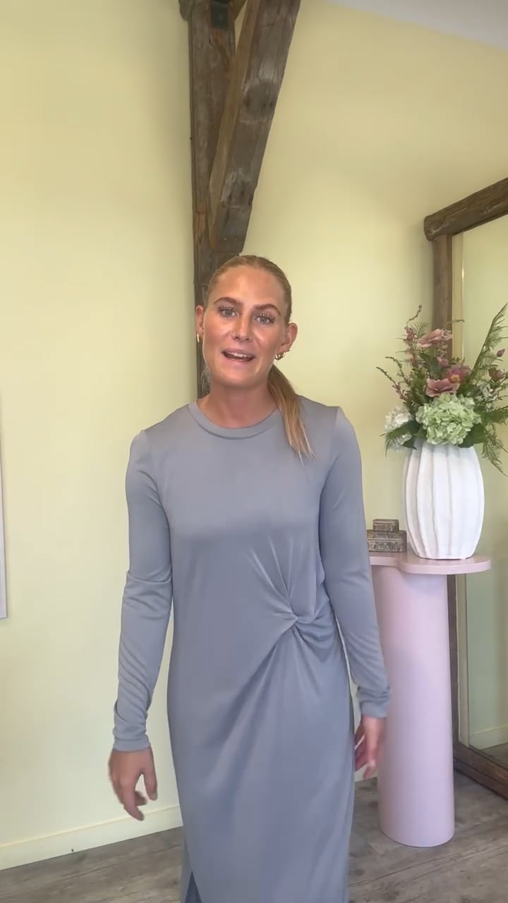 En lækker og smuk kjole fra Pieces - helt perfekt til de køligere sommerdage! Kjolen er i et lækkert tyndt materiale, lange ærmer og slids i begge sider. Knudedetaljen i taljen gør at kjolen bare falder super flot i livet!
