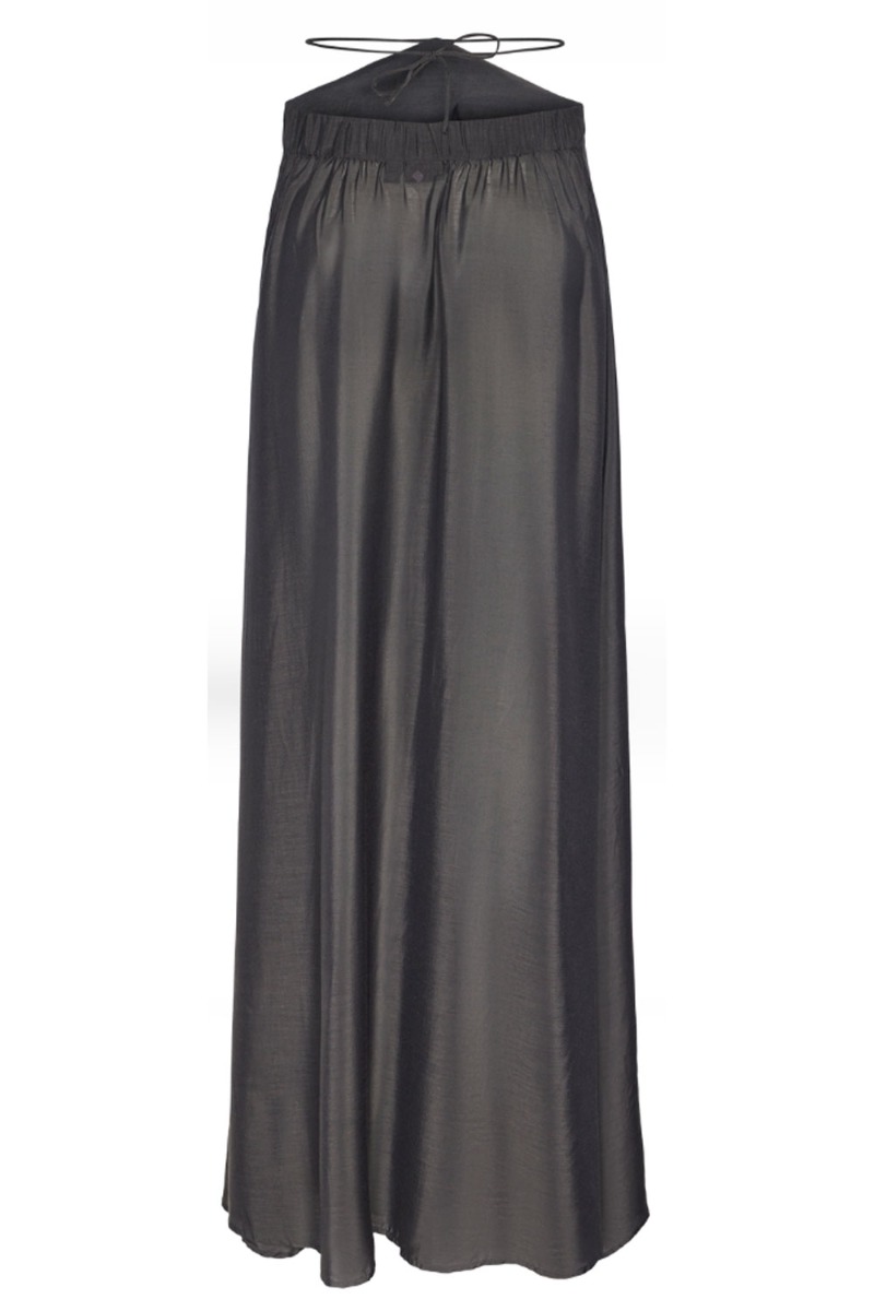 En lang tætsiddende kjole fra Pieces. Den er kommet i en mørke grå farve og derfor passer den også til alt. Den er med bindebånd i nakken og har dette halterneck effekt. Den er fin til et par stiletter eller en lille sandal.