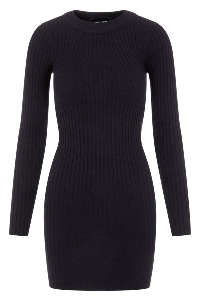 Pieces - Kjole - PC Crista LS O-Neck Knit Dress - Black