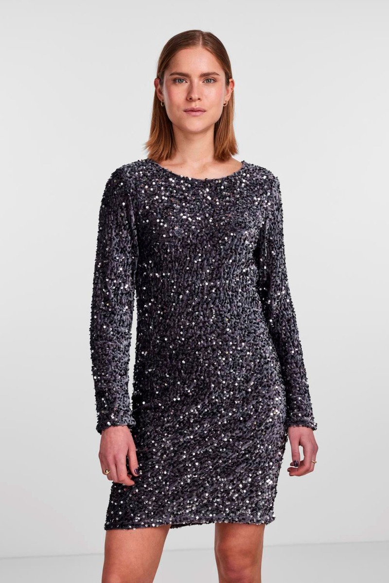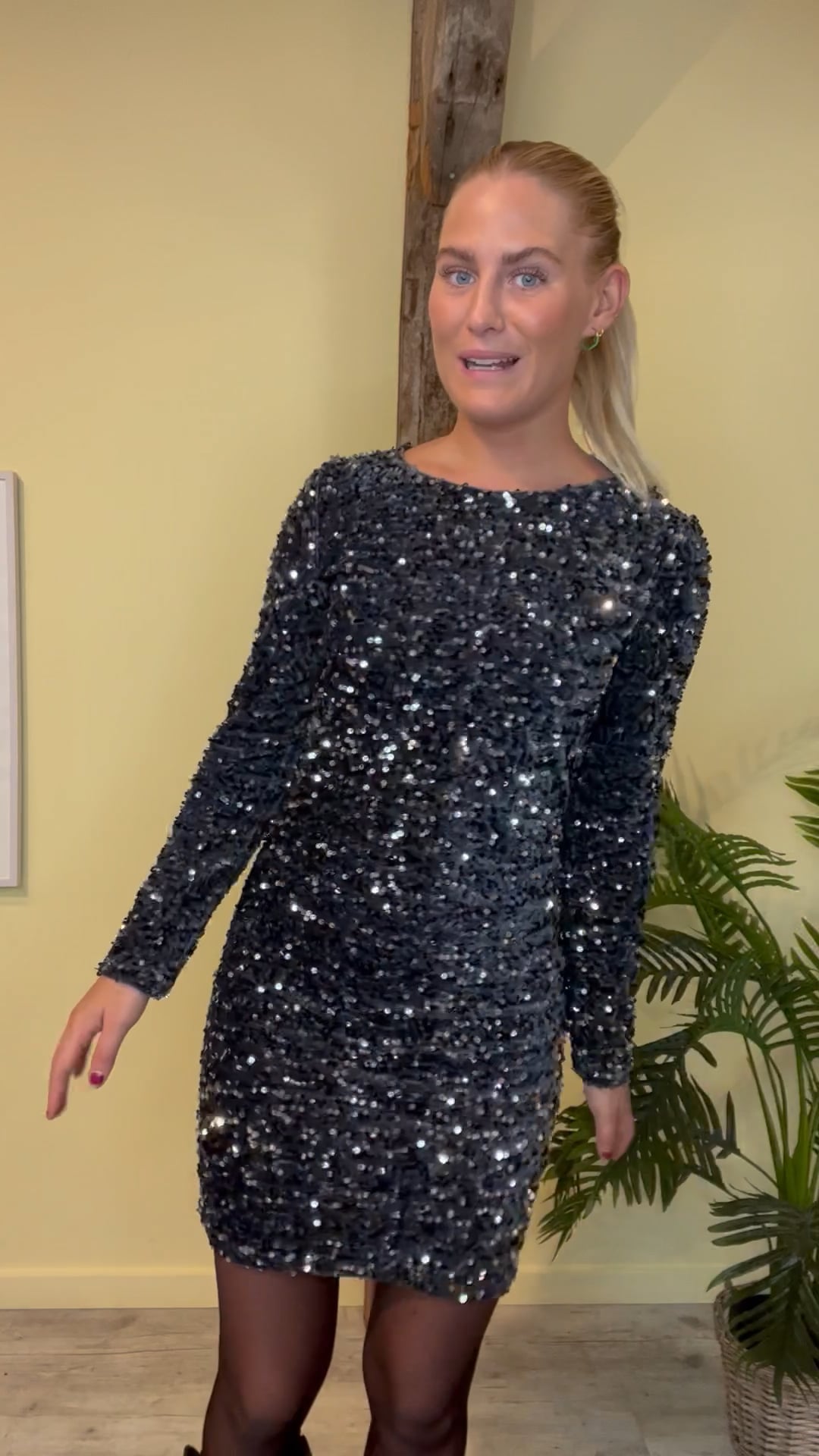 Den smukkeste nytårs eller julefrokost kjole er landet fra Pieces. Den er i grå velour stof med pailetter over det hele. Kjolen er blød i kvaliteten og stram i modellen. Derudover der en smule stræk i kvaliteten, så den sætter så flot på kroppen. Den findes også i en lilla farve.