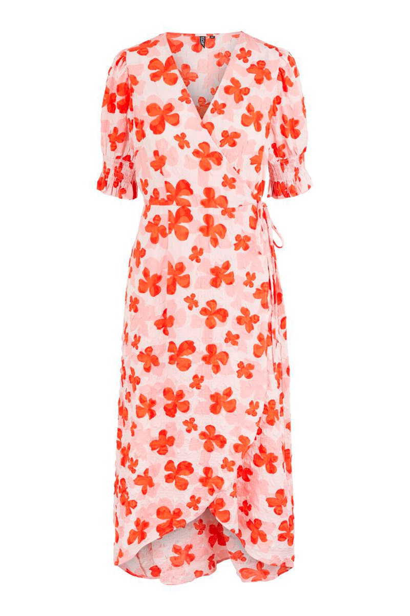 Pieces - Kjole - PC Marisy SS Midi Wrap Dress - Cloud Dancer