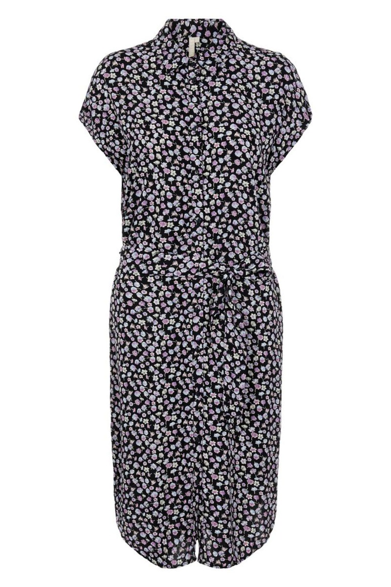 Sød sommerkjole med blomsterprint i rosa, blå og gule nuancer. Kjolen har gennemgående knapper og bindebånd i livet der giver en feminin talje. Den er perfekt til de varme solrige dage med en lille sandal til.