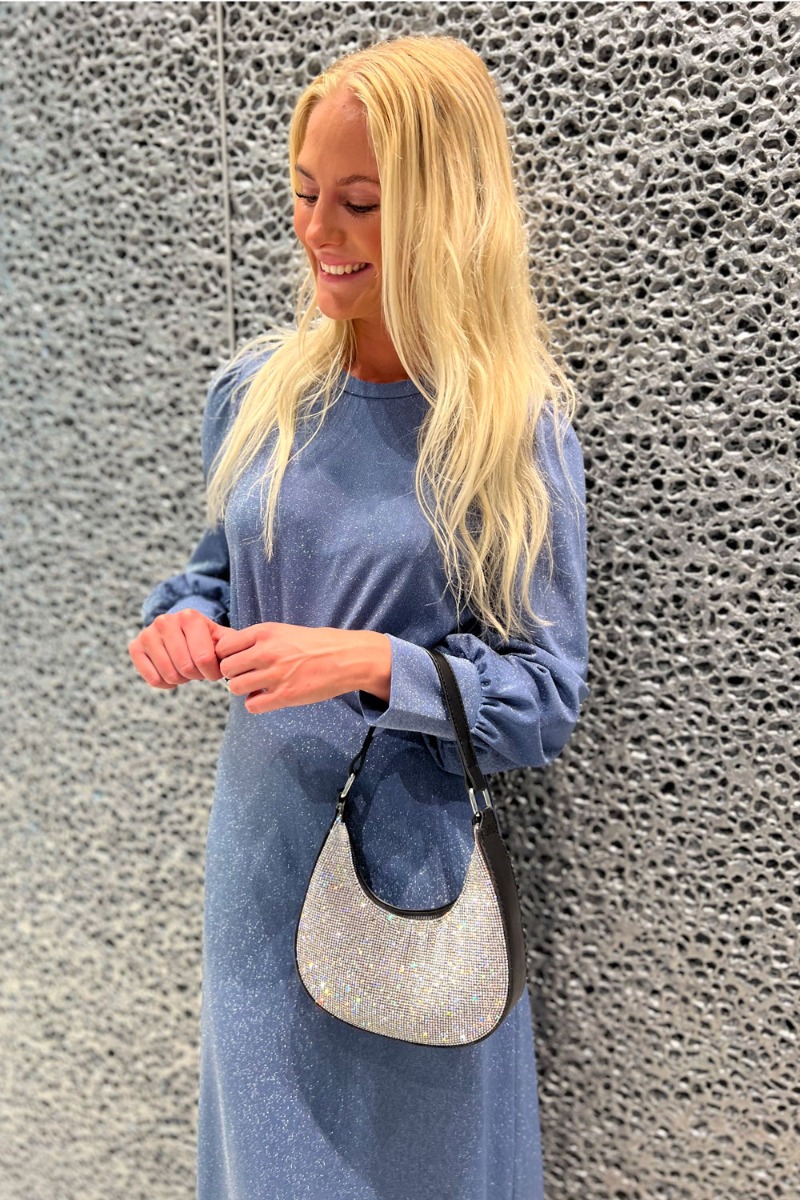 Wauw smukkeste glimmerkjole fra Pieces i en smuk dusty blå nuance. Kjolen har et langt udtryk med lange ærmer og rund halsudskæring. I taljen har kjolen en tydelig syning som giver en flot figur og talje. Kjolen er i et lækkert let materiale som også er utrolig strækbar.