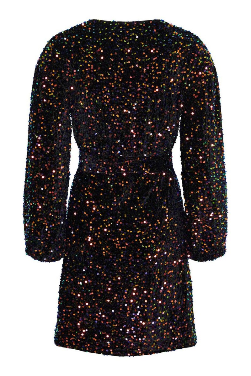 Pieces - Kjole - PC Stella LS Sequin Wrap Dress - Black