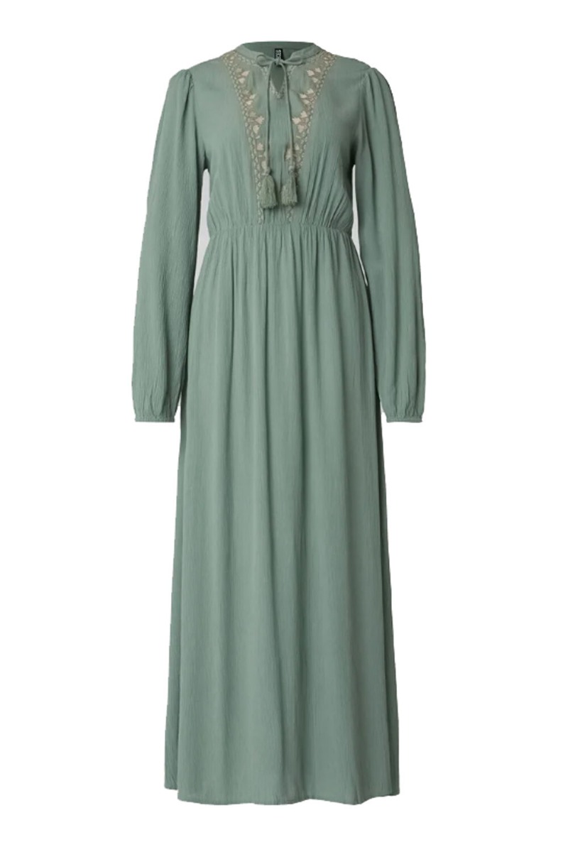 Pieces - Kjole - Pcramda Ls O-Neck Long Dress - Hedge Green