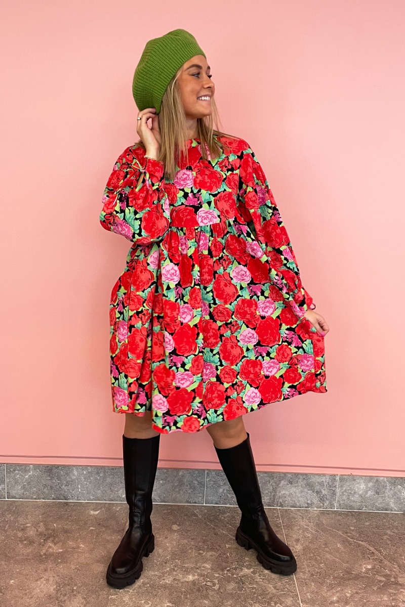 Pieces - Kjole - Sille Dress - Black Roses - Ditte Estrup