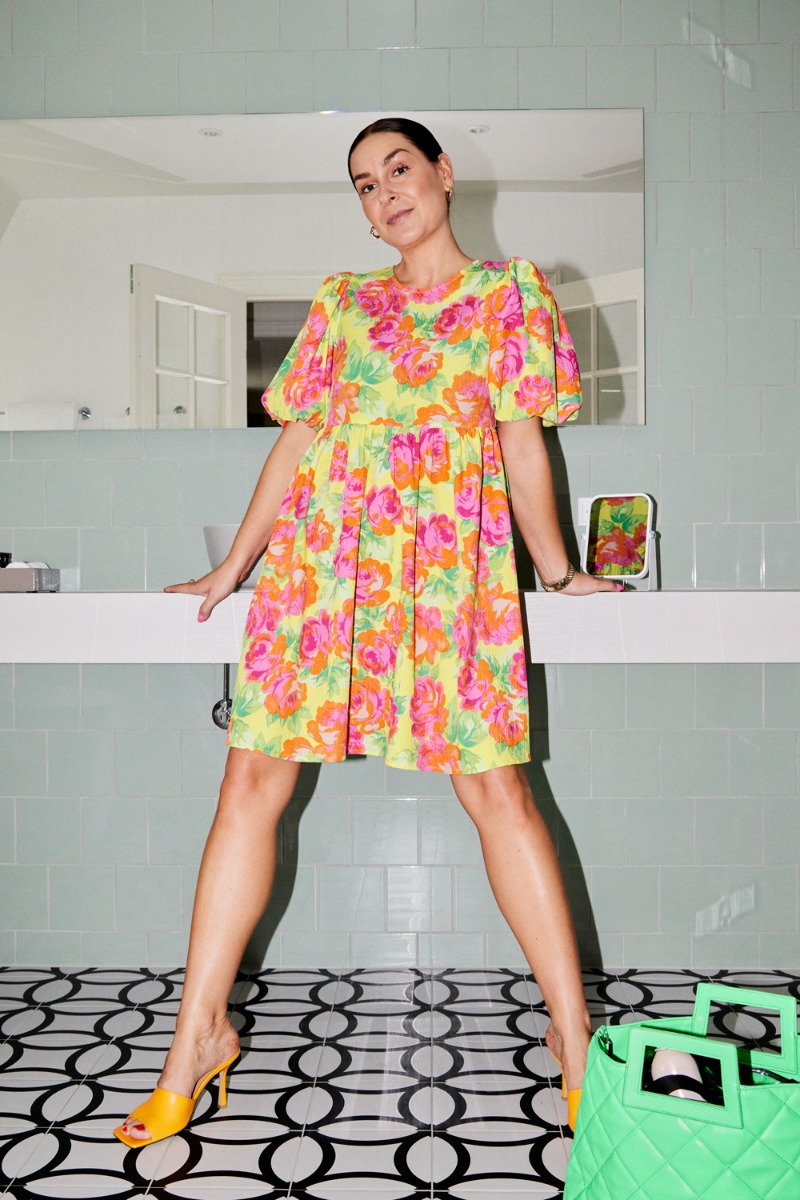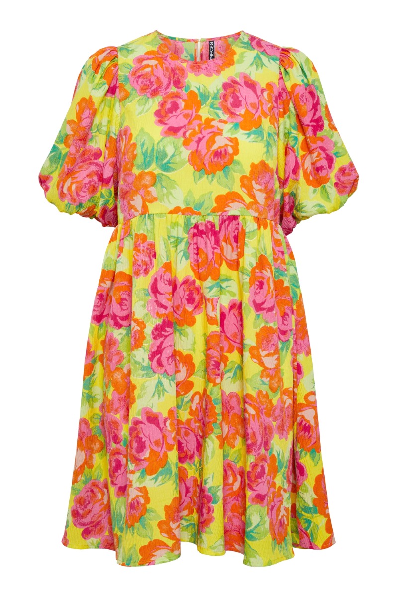 Fineste sommerkjole designet af Pieces i smarbejde med Ditte Estrup. Kjolen er i smukke klare nuancer med en fint blomsterprint.