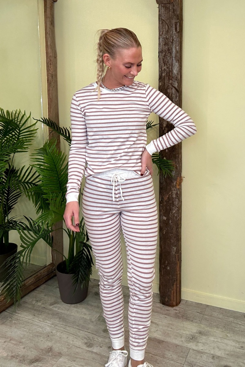 Et virkelig fint natsæt fra Pieces som nemt kan styles til hverdagen med en blazer over. Sættet kommer sammen med bluse og buks og er i en utrolig blød og behagelig kvalitet. Bukserne kan snøres ind i taljen og er med elastik.