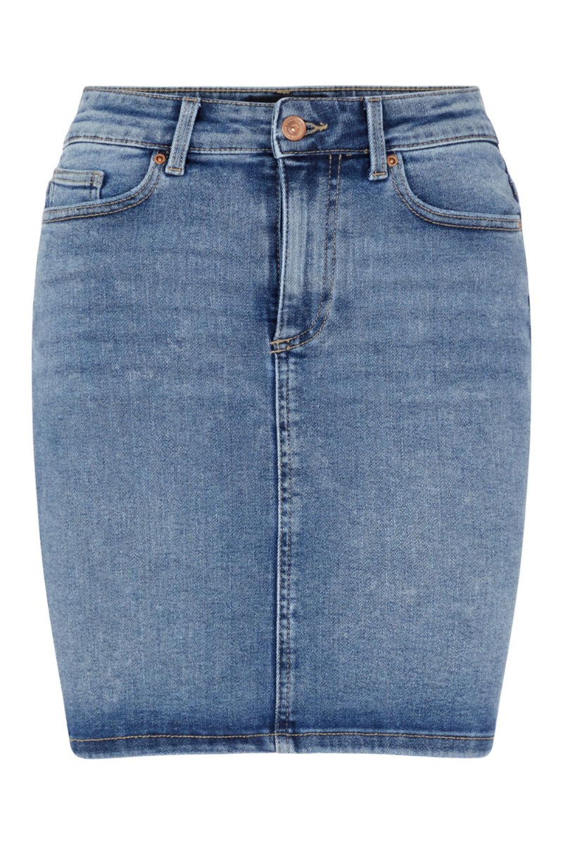 Pieces - Nederdel - PC Lili MW Denim Skirt - Light Blue Denim