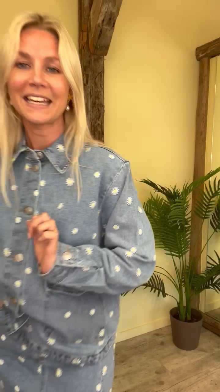 Den sødeste denimnederdel fra Pieces. Nederdelen er i en lys denimvask og er med fine broderede blomster på. Den er til den korte side og der findes tilhørende denimjakke til, så du kan skabe et helt sæt.