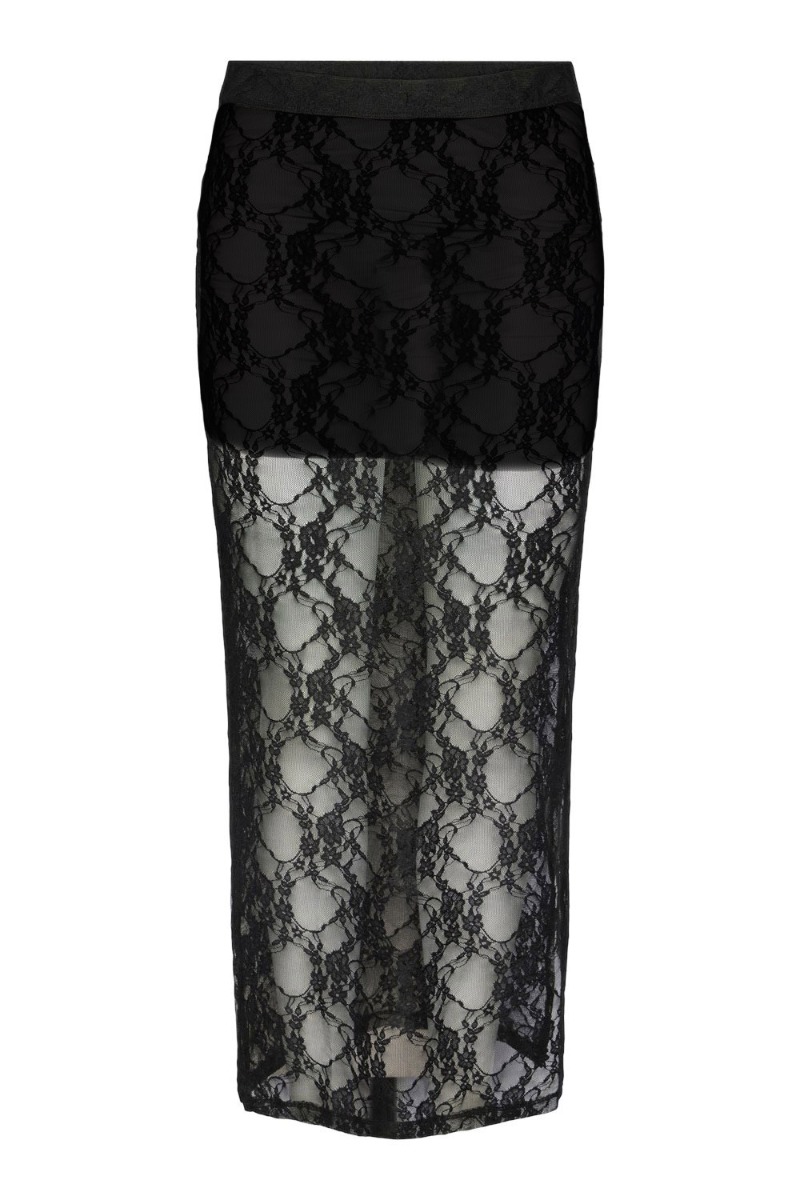 En fin nederdel i en sort blonde kvalitet er kommet fra Pieces. En perfekt nederdel til denne sæson sammen med en fin top til. Den har et underlag som er kort og tætsiddende med et lag udover som er langt og mere løst siddende. Der er derudover slids i begge sider i bunden i den yderste lag og det er lavet i denne smukke blonde kvalitet.