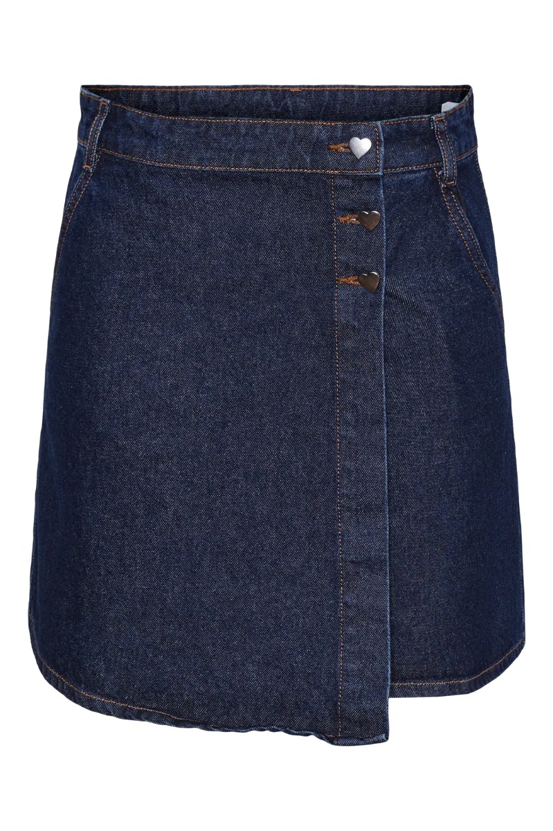 Virkelig smart, kort nederdel fra Pieces! Denne nederdel er lavet i en slå-om facon, som lukkes med tre hjerteformede knapper i den ene side. Den er altså super sød, og kan sagtens styles til et par støvler til de lidt koldere dage!