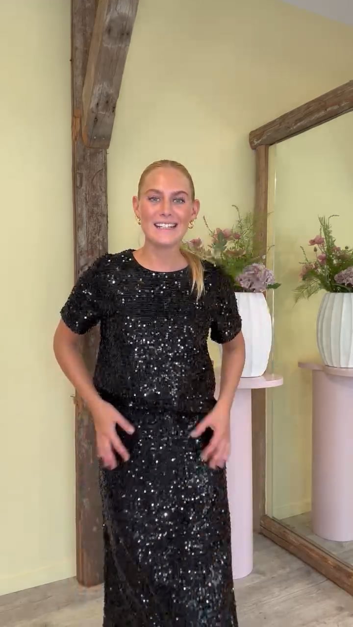 Pieces - Nederdel - Pc Serena Sequin Hw Midi Skirt - Black
