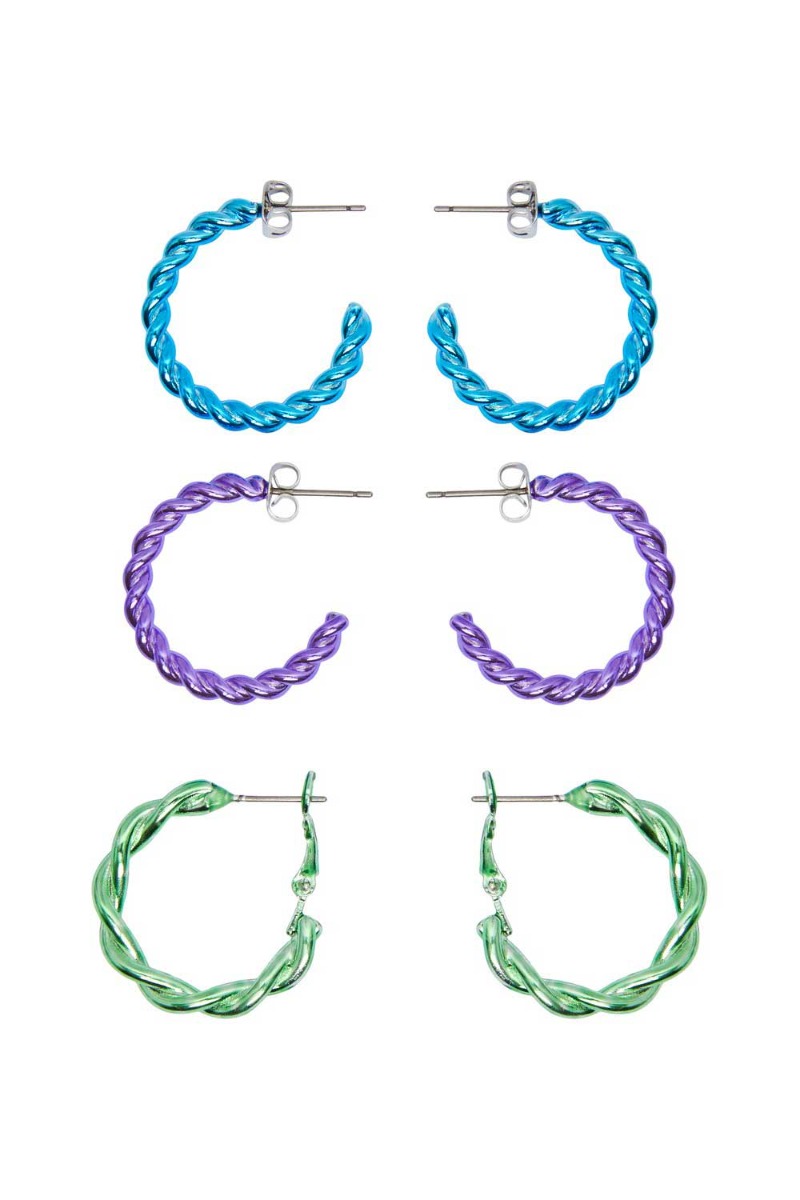 Pieces - Øreringe - PC Olana 3-Pack Earrings - Princess Blue/Purple/Green