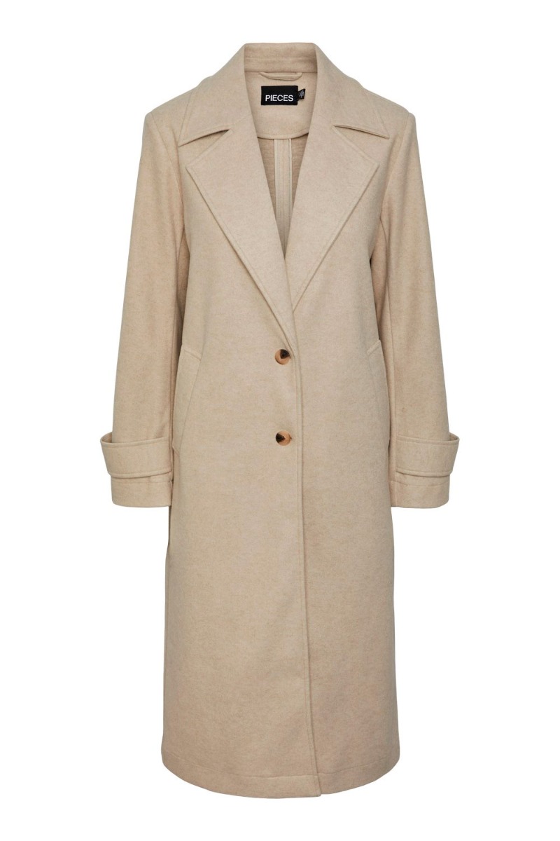 Pieces - Jakke - PC Beatrice Long Jacket - White Pepper
