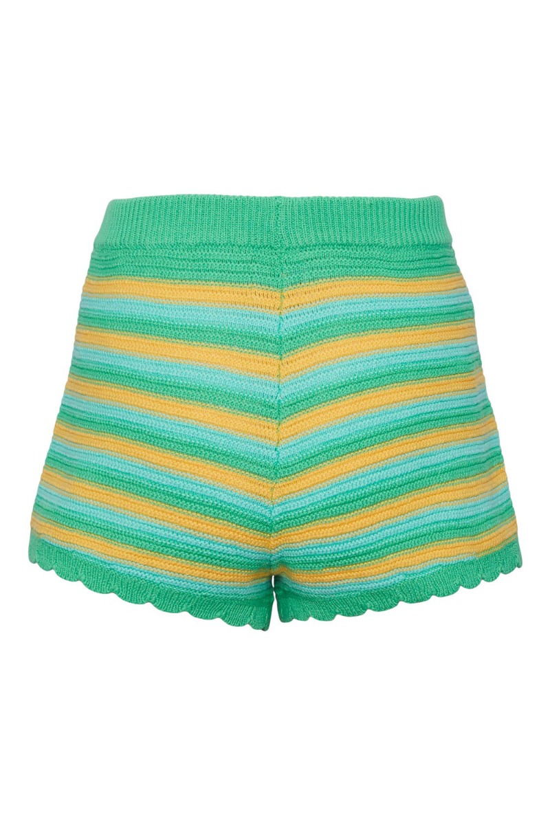 Fineste hæklet shorts fra Pieces i grøn og gul stribet. Shortsene er i en kort model med elastik i taljen og sidder så behageligt. De har matchende cropped top. Skal du være helt klar til sommerferien så skal du helt sikkert have dette sæt med dig i kufferten.