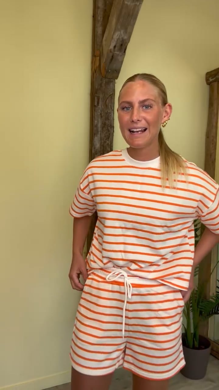 Et par seje fra Pieces er kommet med striber i hvid og orange. De er løse i pasformen og kan nemt styles til den matchende t-shirt fra samme mærke. Den er blød i kvaliteten og er god til søndagene.