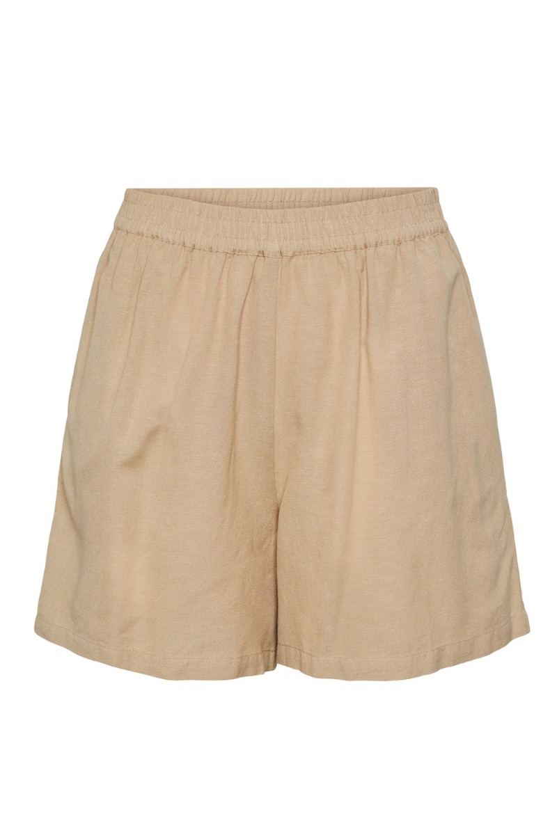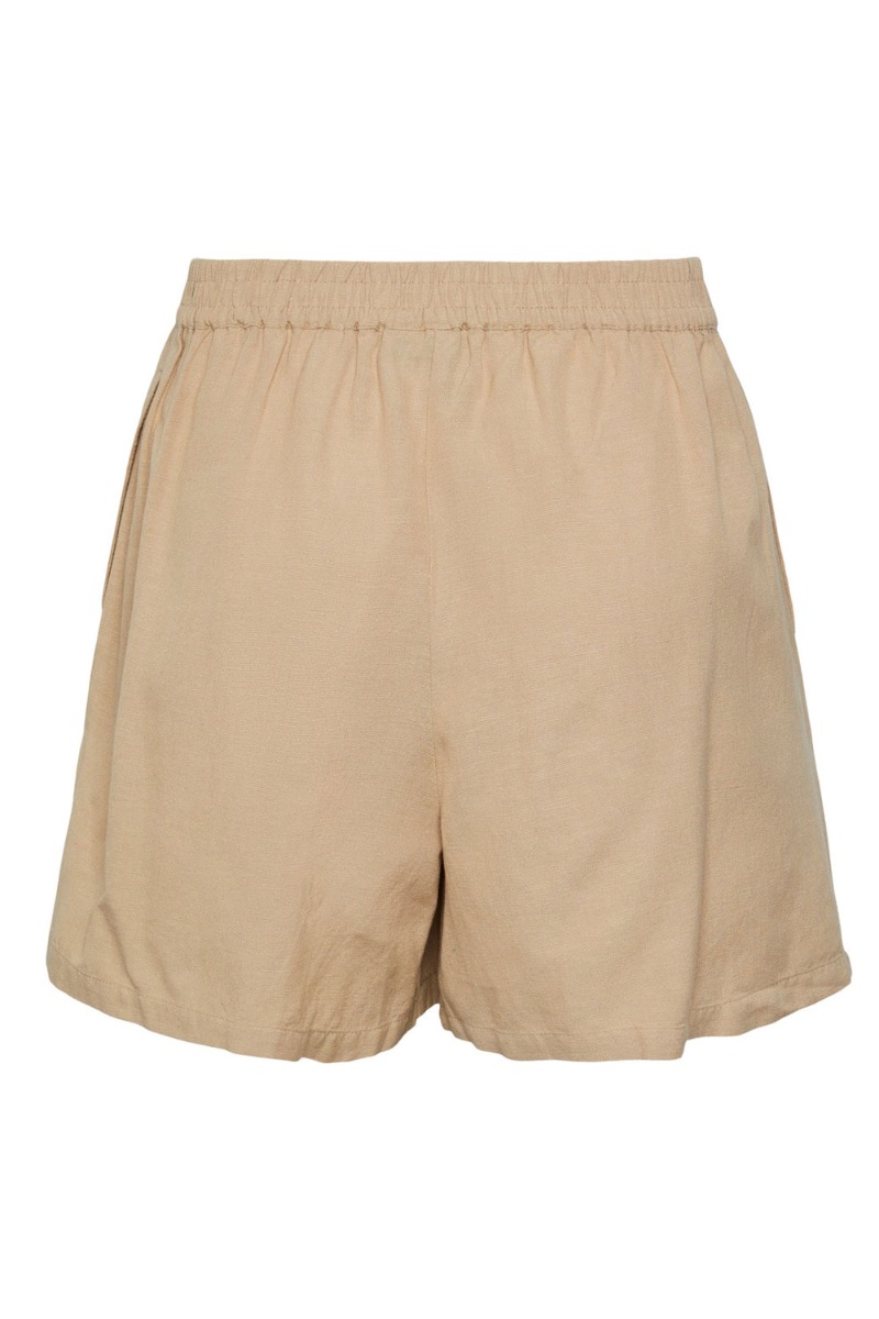 Klassiske sommershorts fra Pieces i lyse brun med elastikkant i livet og sidelommer. Shortsene er designet i et dejligt løst snit med en smule hørkvalitet i der gør dem luftige til de varme dage. Et musthave at have i garderoben til sommer.
