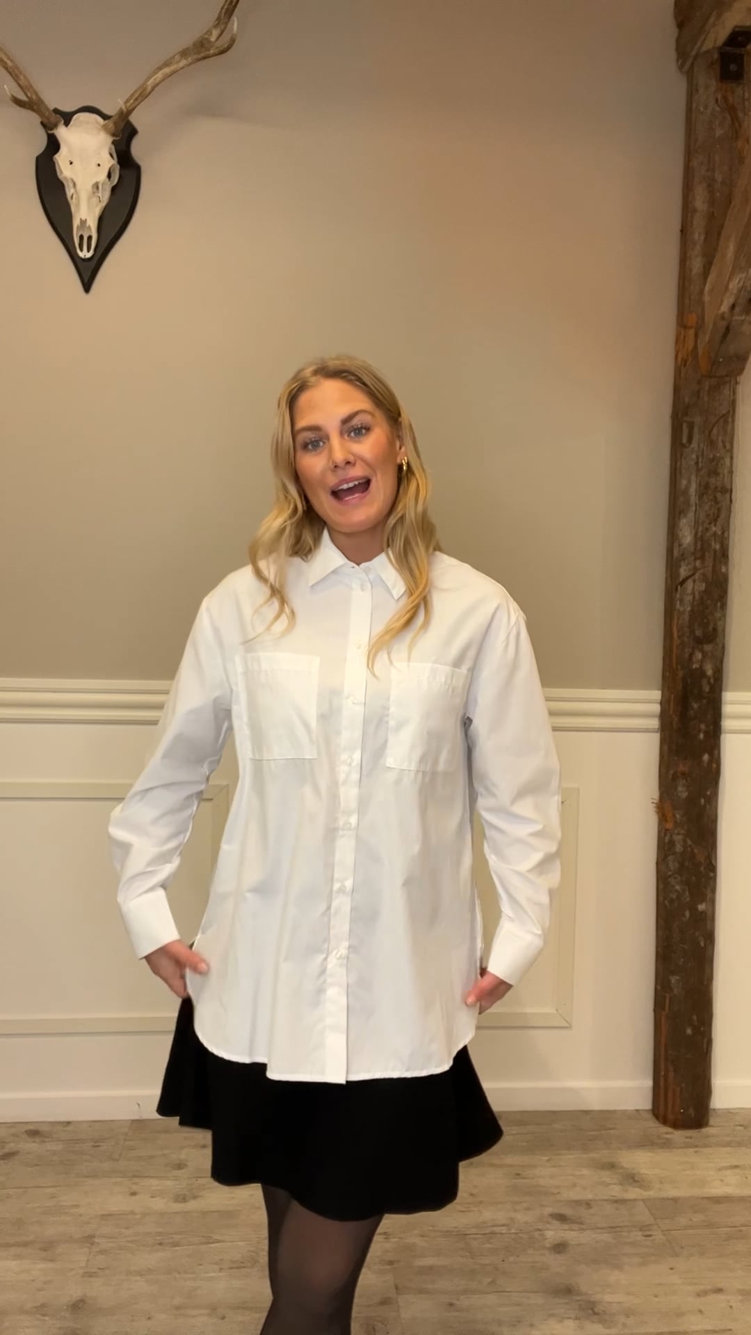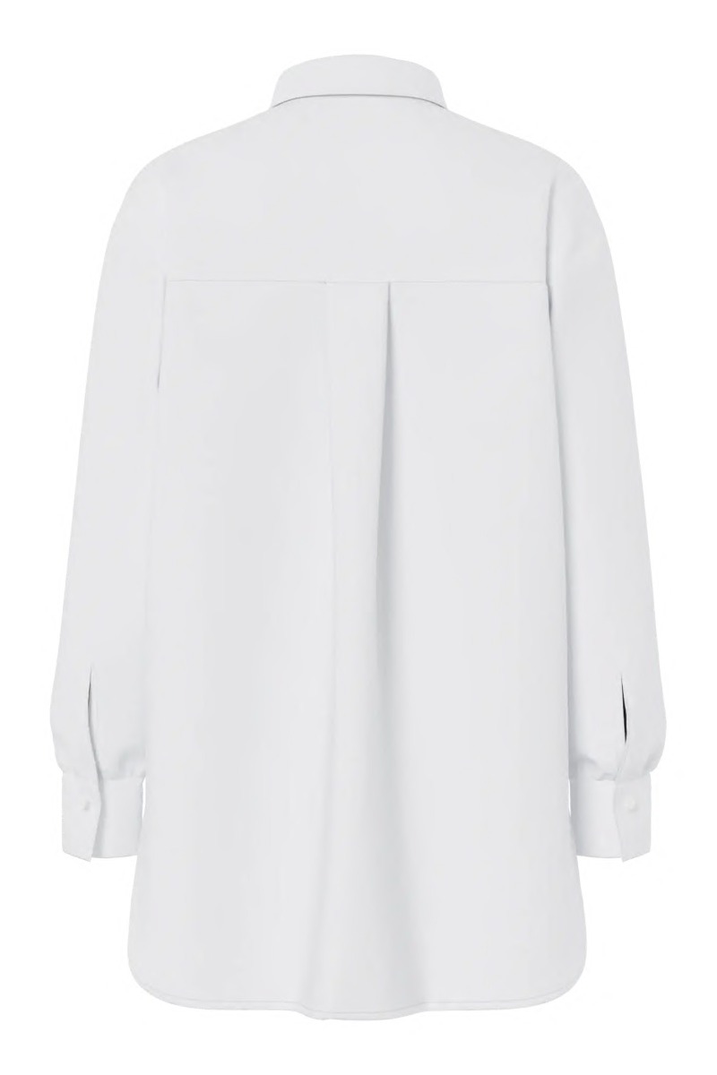 En fin skjorte fra Pieces er kommet til denne sæson i klassisk hvid farve. Den er løs i pasformen og har lidt ekstra længde bagpå end foran. Den er fin lukkes til et par jeans men kan også bruges åben. Den findes også i blå.