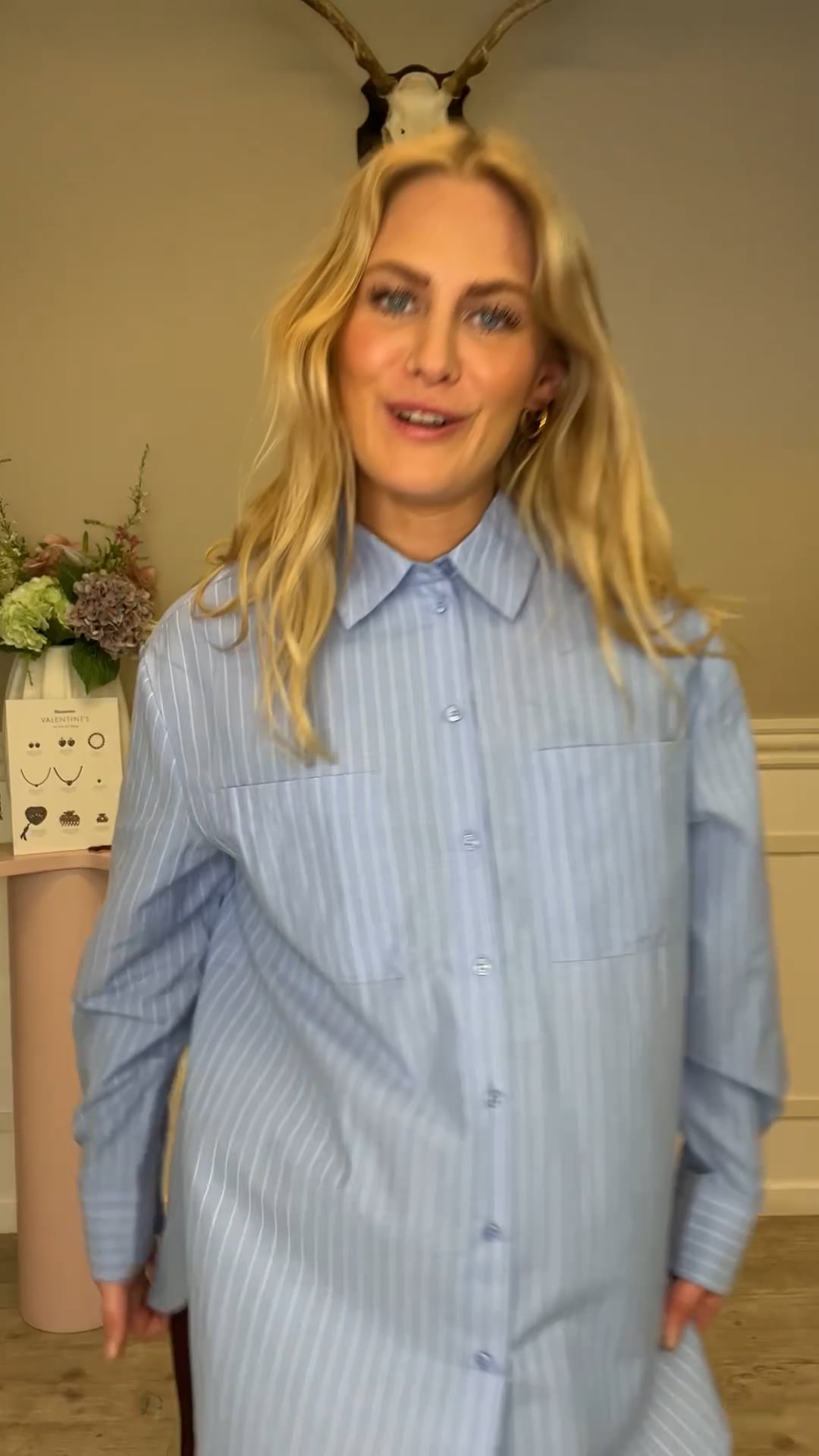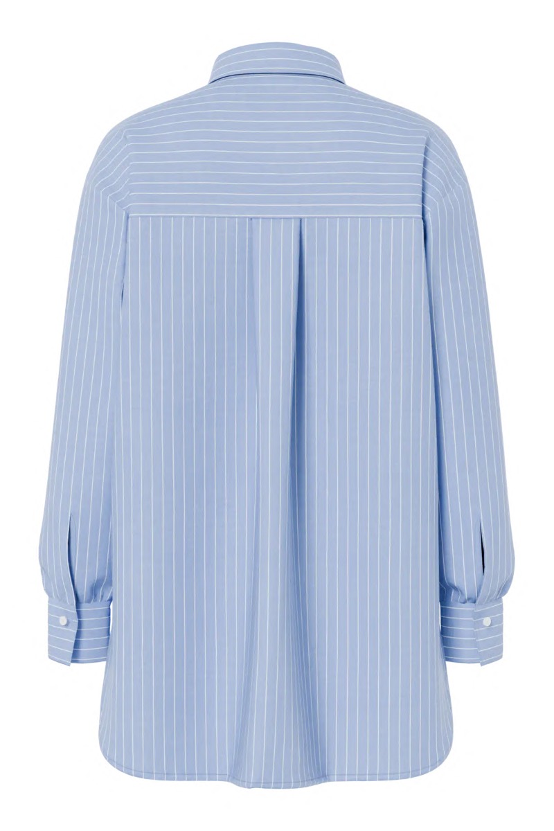 En fin skjorte fra Pieces er kommet til denne sæson med tynde nålestriber i hvid og en grundfarve i blå. Den er løs i pasformen og har lidt ekstra længde bagpå end foran. Den er fin lukkes til et par jeans men kan også bruges åben. Den findes også i hvid.