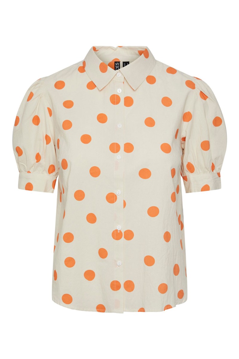 Pieces - Skjorte - PC Addi SS Shirt - Cloud Cream/Orange