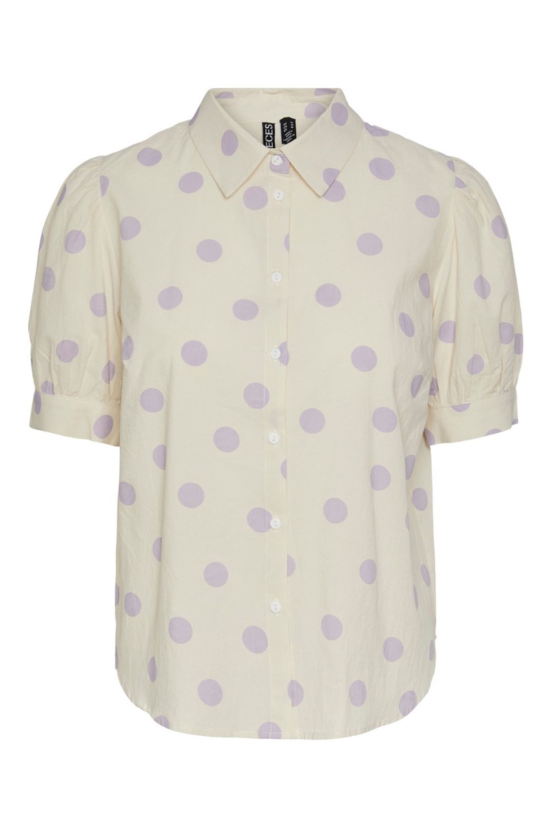 Pieces - Skjorte - PC Addi SS Shirt - Cloud Cream/Purple