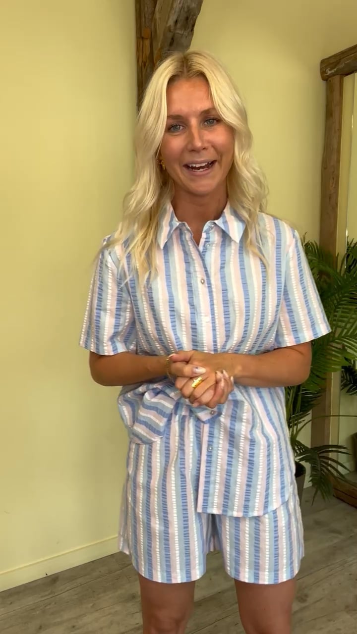 En sej skjorte fra Pieces er perfekt til sommer med en løs pasform og i en dejlig let kvalitet. Den kan bruges sammen med den matchende underdel. Den har klassisk skjorte detaljer ved krave og knapper samt så er den kort ærmet. Den findes også med brune striber.